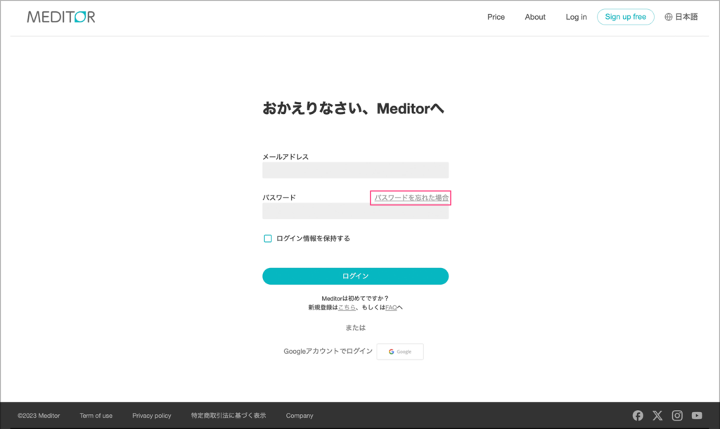 現在ご使用中のパスワードはセキュリティ上、MEDITOR®システムでの管理を行っておらず、パスワードを紛失された場合には、MEDITOR®側から現在のパスワードを通知することができません。