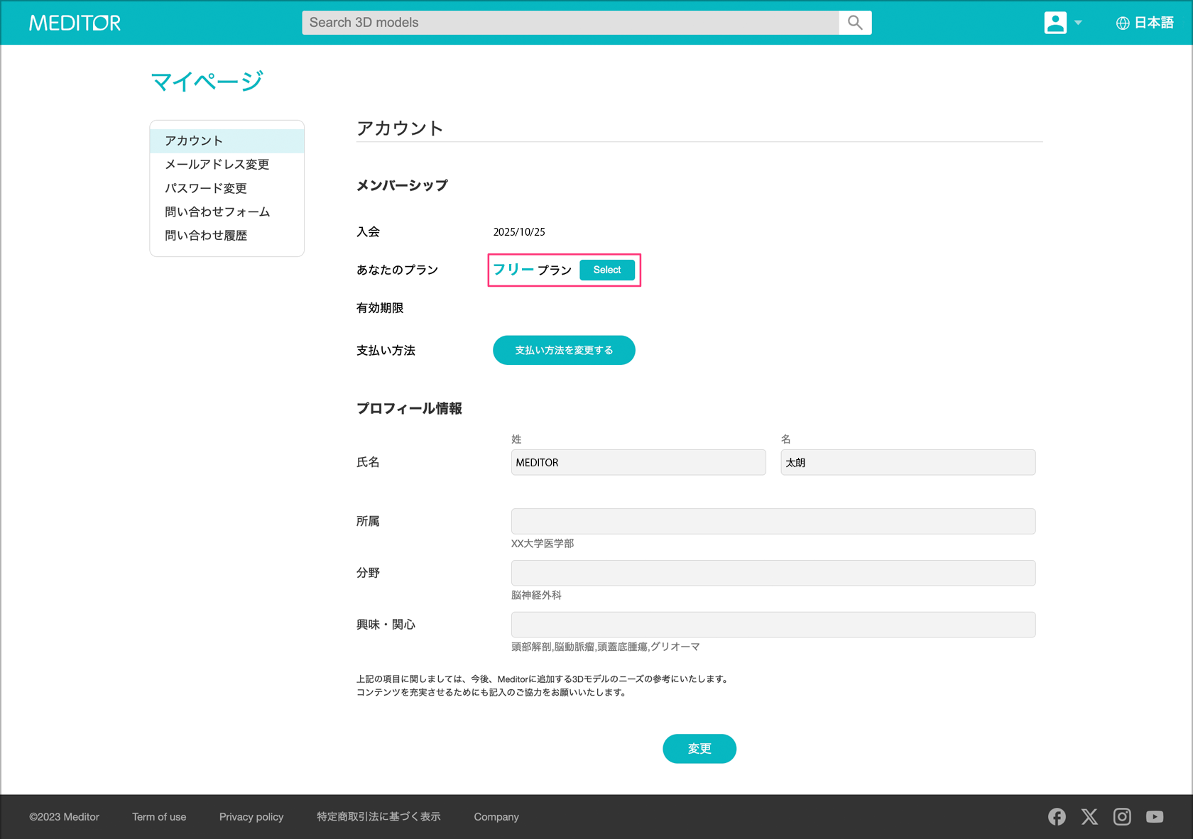 ④念の為に、マイページの「あなたのプラン」が「フリープラン」になっているかご確認をお願いします。