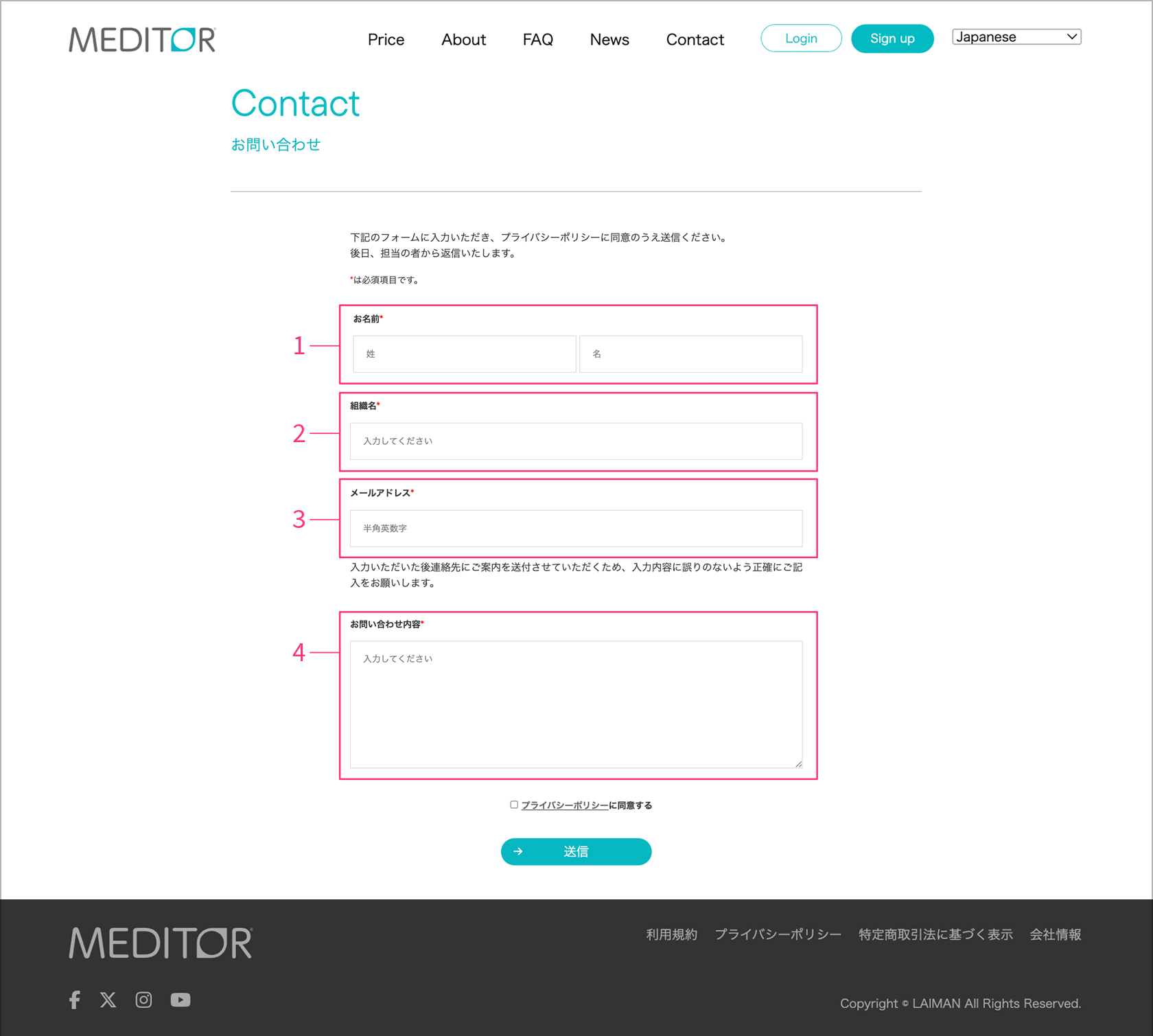 - MEDITOR®︎で登録されている姓・名を入力してください。