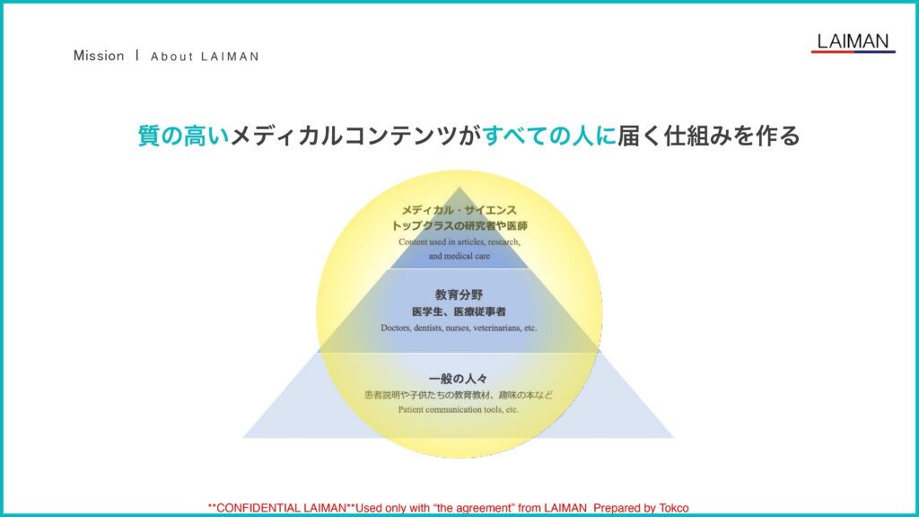 - 医療や健康は自分の体を知ることから始まります。子供の頃から体に関する正しい知識を身につけることは生涯の健康に繋がり、正しい理解によって正しい情報を取捨選択できれば、自分自身や家族、大切な人を守ることができます。質の高いメディカルコンテンツを全ての人に平等に届け、全ての人に 質の高い教育が連鎖することを追求します。
