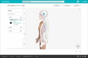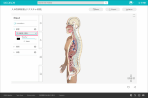 例:人体の矢状断面と一部を強調した図、部位を色分けした図、などから選べます。