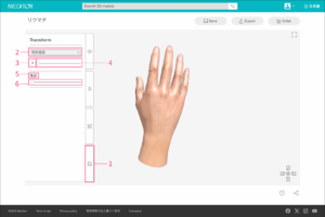 TOP » MEDITOR® チュートリアル » ビューアー内操作 » Transformタブ » Transformタブはどこにある? MEDITOR® チュートリアル MEDITOR®とは MEDITOR®の画面構成 モデルの分類 モデルの検索 基本操作 エクスポートについて カスタムオーダーについて モデルの保存について Viewタブ Lightingタブ Objectタブ Transformタブ 3Dモデルコントローラー フルスクリーンについて ヘルプについて 共有について MEDITOR® チュートリアル このページが含まれる項目:Transformタブ Transformタブはどこにある? ビューアー内の構成 Transformタブ アニメーションの選択 アニメーションの再生/停止 アニメーションスライダー テクスチャブレンド名 テクスチャブレンドスライダー