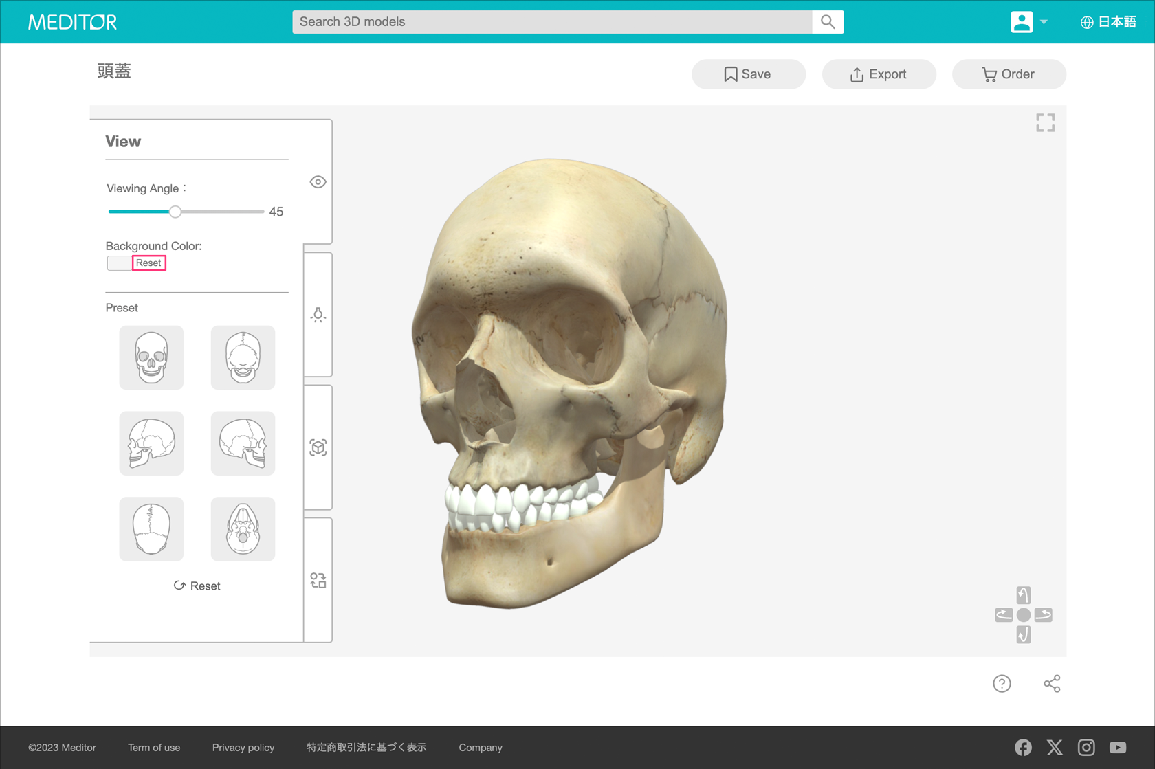 背景色を3Dビューアー上で指定しても、エクスポートボタンを押して出力した画像(PNGデータ)の背景は透過状態になります。